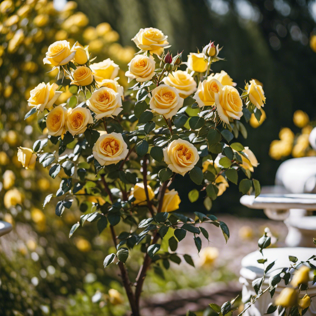• Decorativ: Forma de copac și culoarea galben intens a florilor fac din acest trandafir o piesă de rezistență în grădină, ideal pentru borduri și amenajări peisagistice